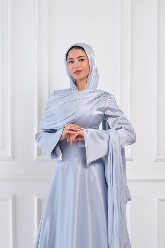 Asymmetric Grace Shoulder Drape Dress in Baby Blue