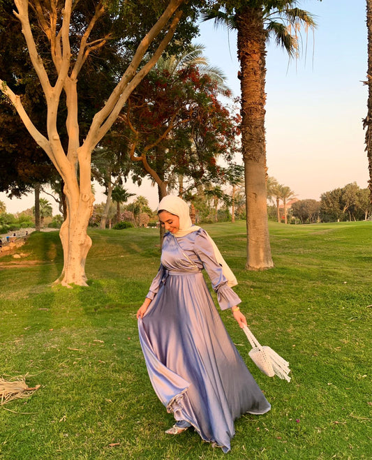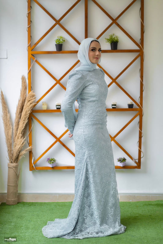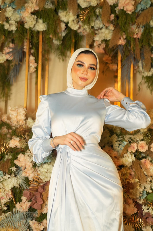 Baby-blue Embroidered Satin Soiree Dress with Extension