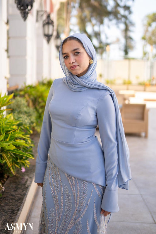 Baby-blue Corset Soiree 2- Pieces Dress Set with Embroidered Skirt