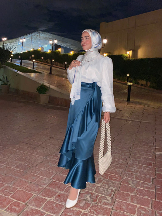 Silver Wrap Satin Blouse