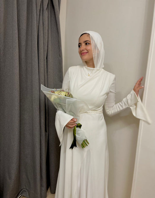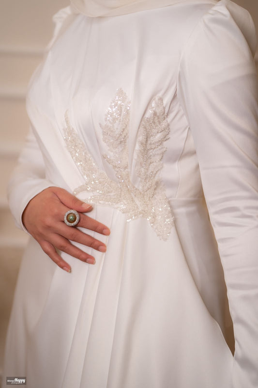 Off-white Satin Embroidered Bridal Dress