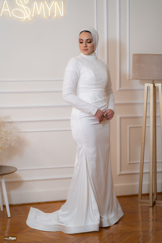 Off-white Mermaid Soiree Dress with Embroidered Top