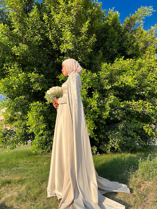 Champagne Royal Soiree Dress with Floral Embroidered Cape