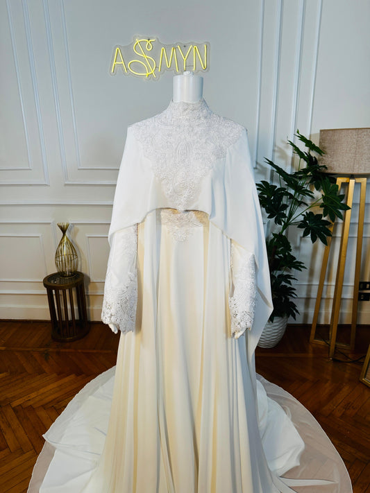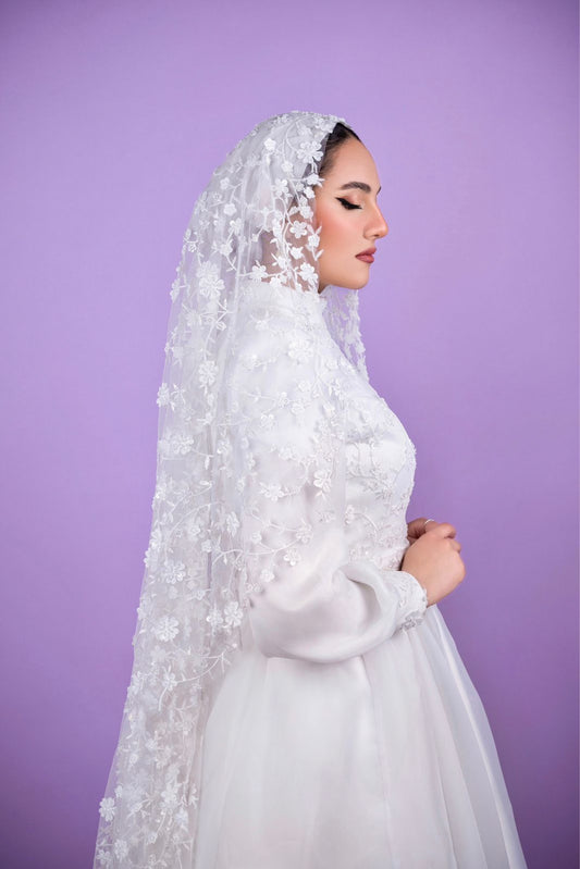 Vintage Embroidered Bridal Dress with Bridal Veil