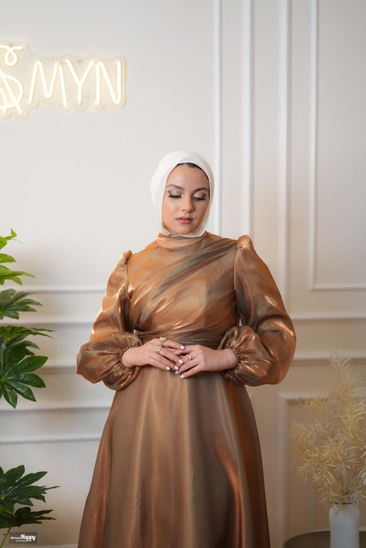 Gold Metallic Organza Soiree Dress