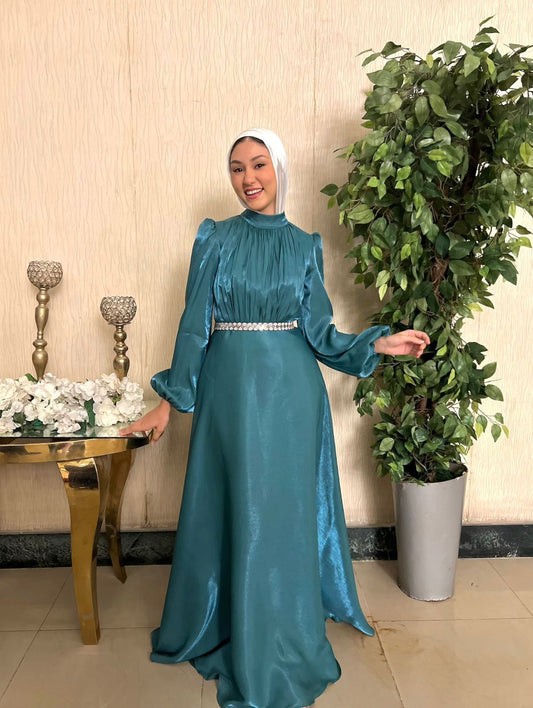 Sold outPetroleum Organza Satin Soiree Dress
