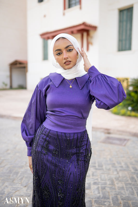 Dark Purple Soirée 2-Pieces Dress Set with Embroidered Skirt