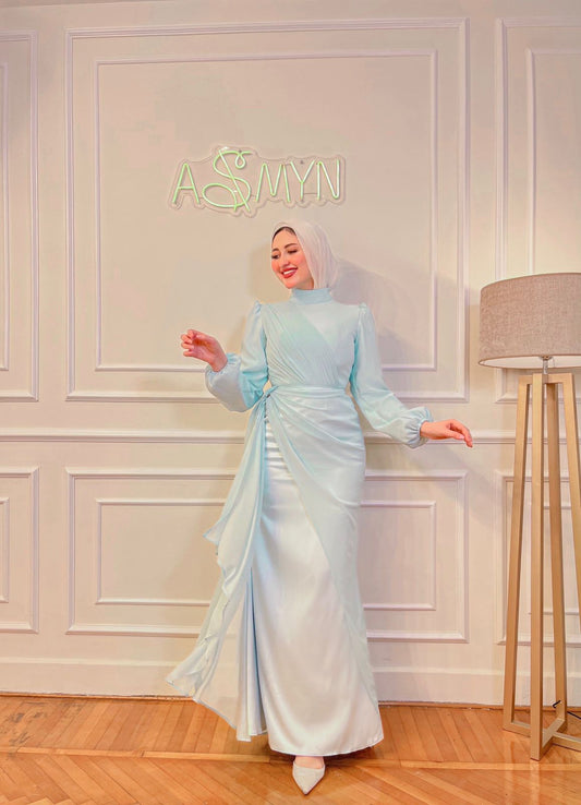 Baby-blue Chiffon Satin Soiree Dress