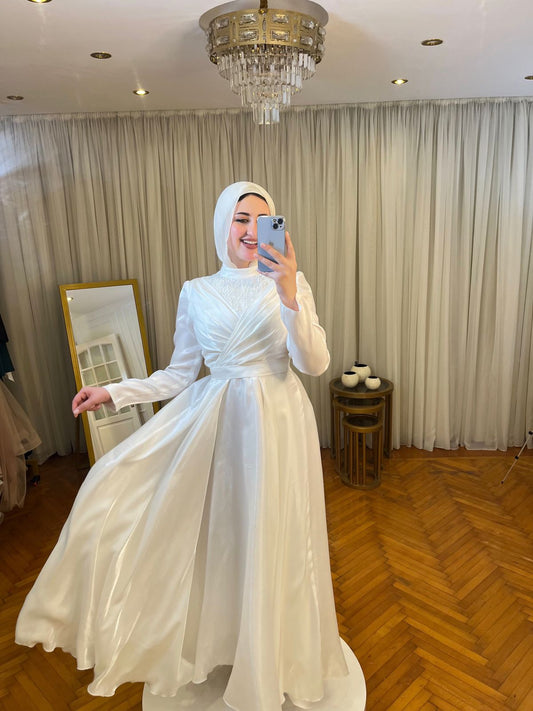 Off-white Organza Draped Soiree Dress