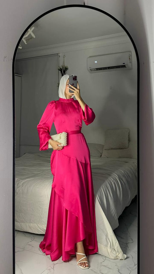 Pink Satin Wrap Dress