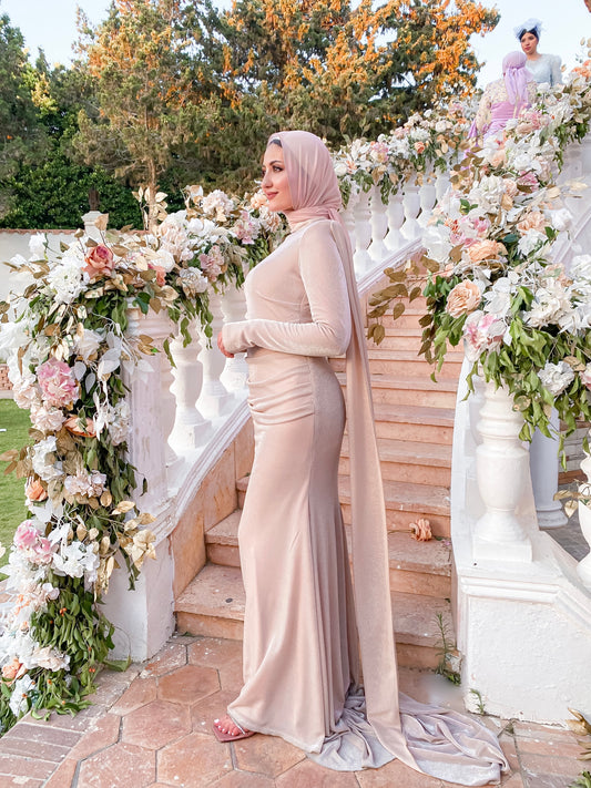 Silver Cup Soirèe Dress with Neck Wrap