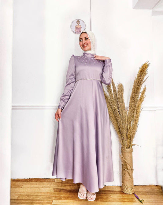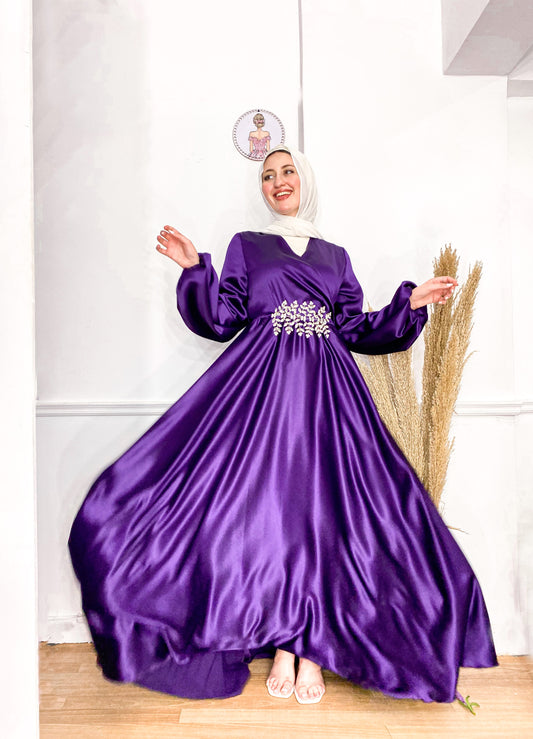 Dark Purple Soirée 2-Pieces Dress Set with Embroidered Skirt
