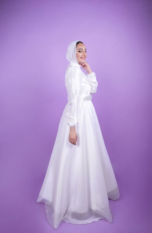 Off-white Satin Embroidered Bridal Dress