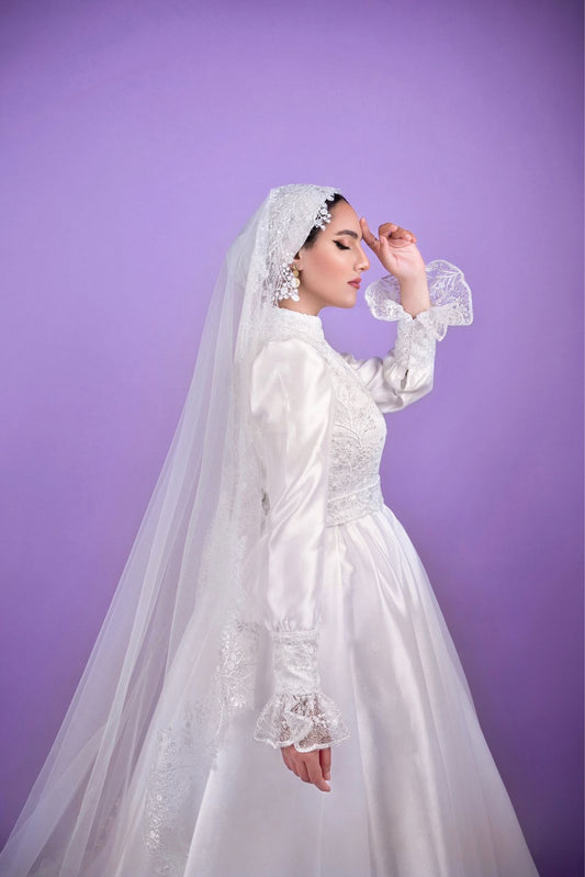 Vintage Embroidered Bridal Dress with Bridal Veil