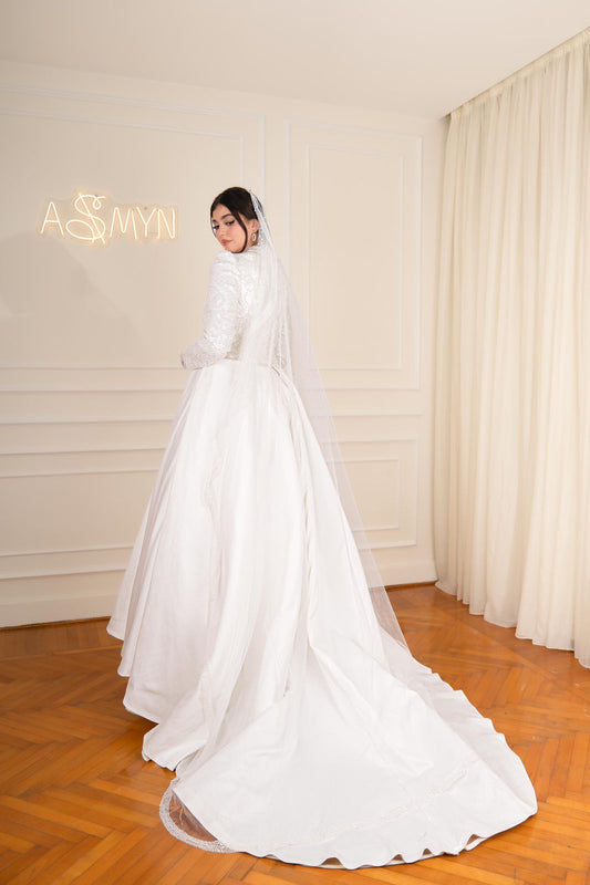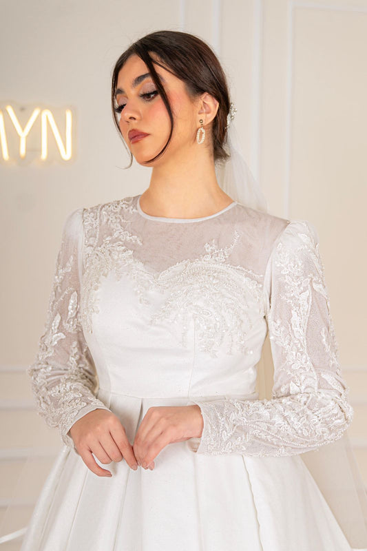 Off-white Princess Bridal Dress with Embroidered Sleeves