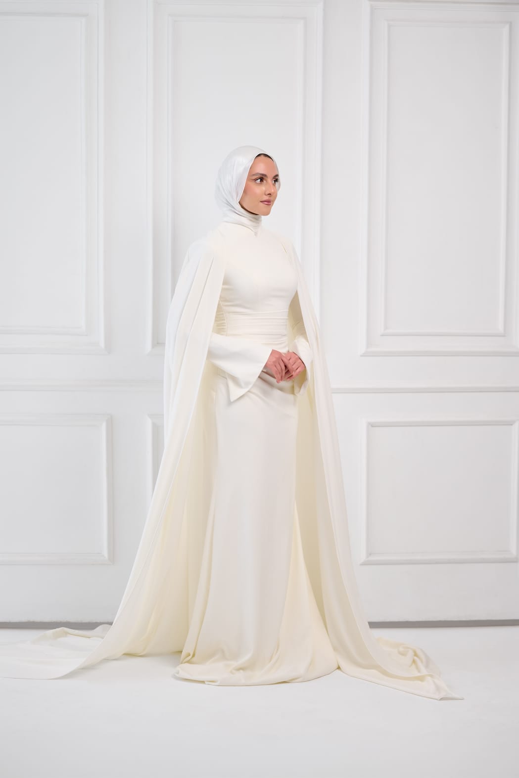 Ivory Aura Statement Cape Dress in Off-White
