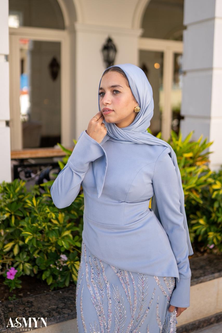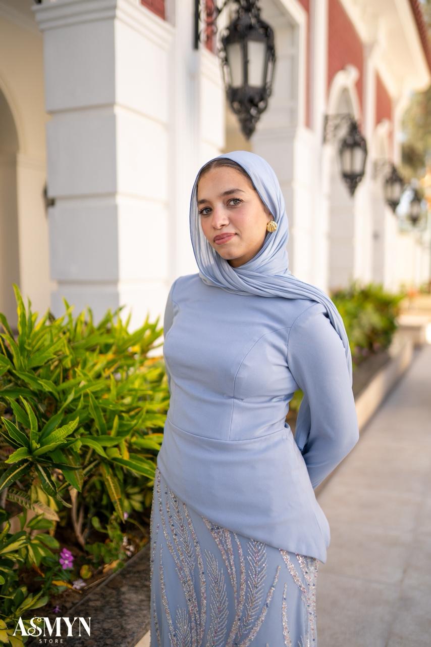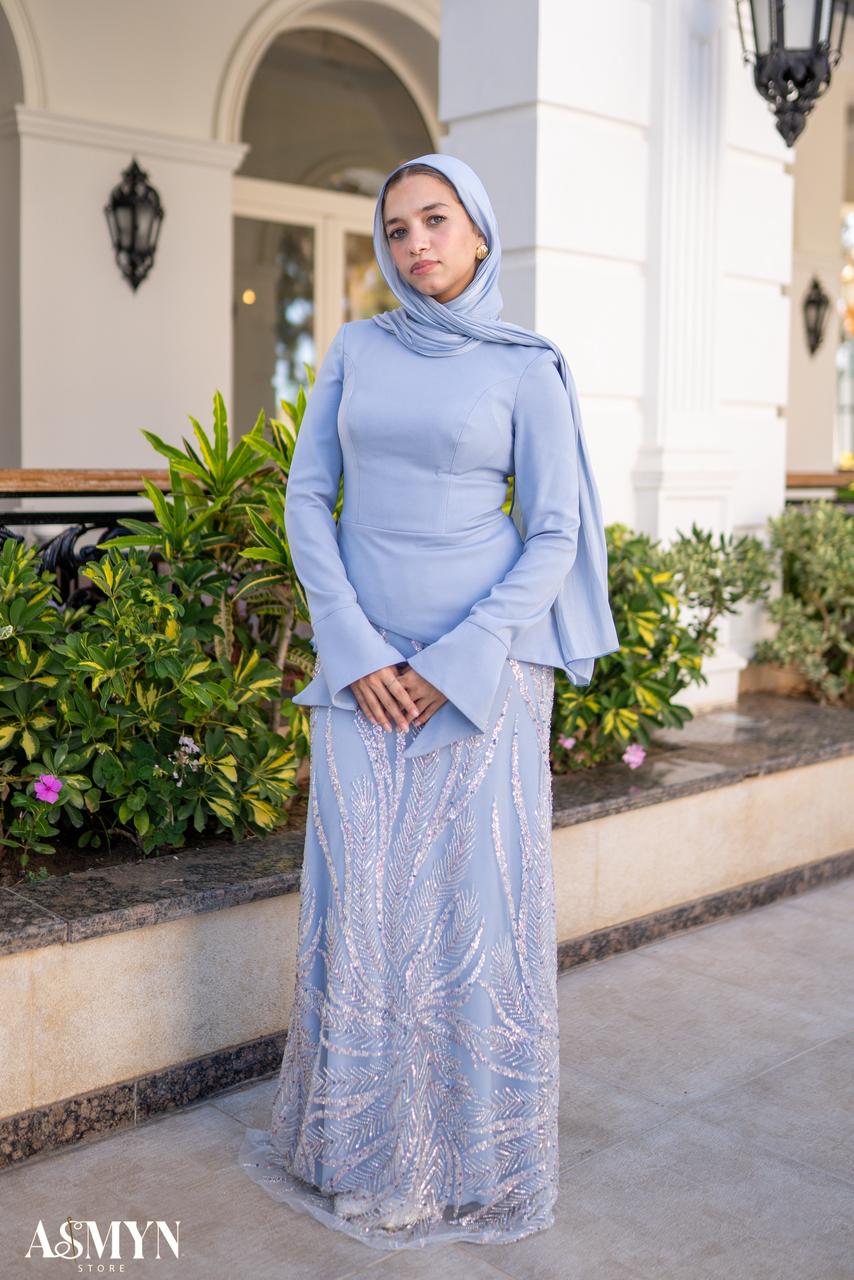 Baby-blue Corset Soiree 2- Pieces Dress Set with Embroidered Skirt