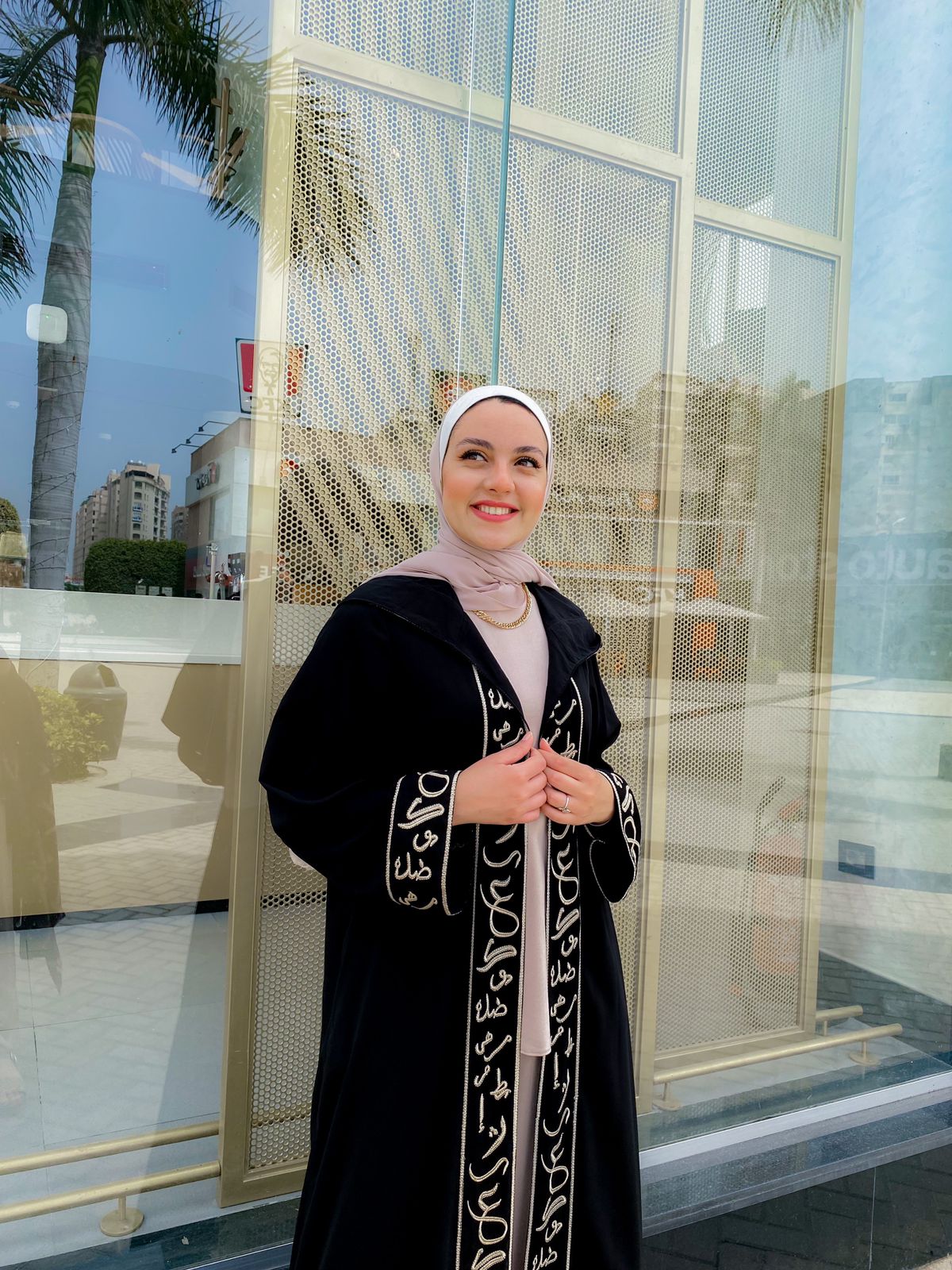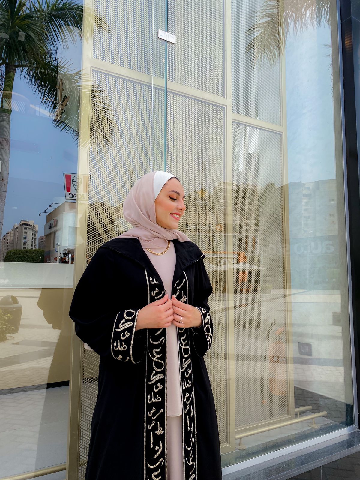 - Material: كريب سعودي مطرز بالخط العربي