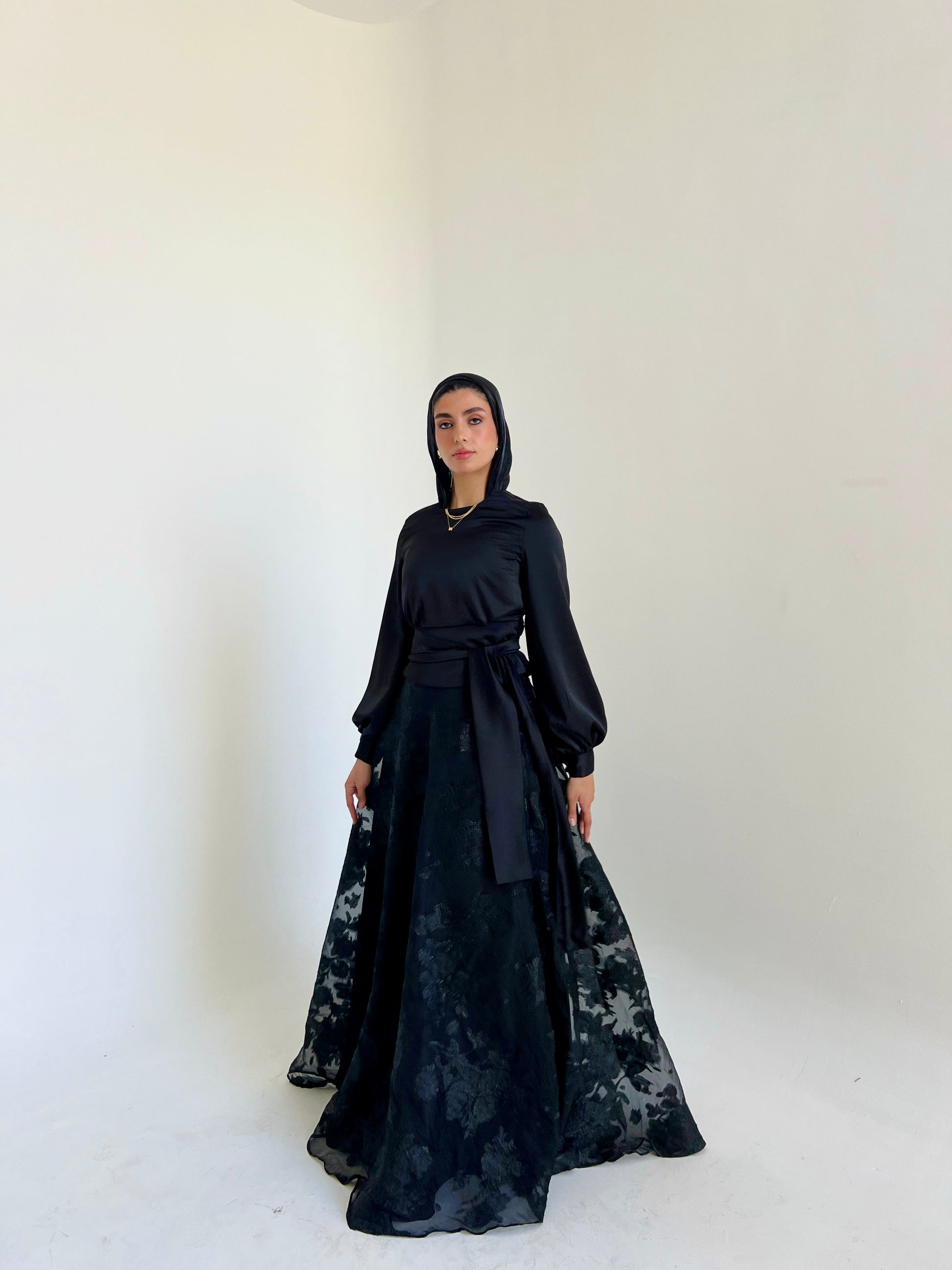 Black Cloche Skirt with Classic Embroidery
