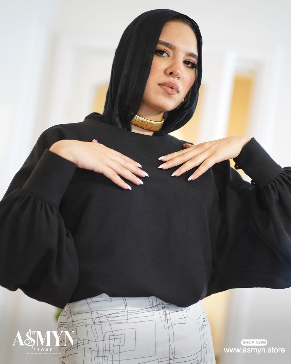 Black Puffy-sleeves Linen Blouse