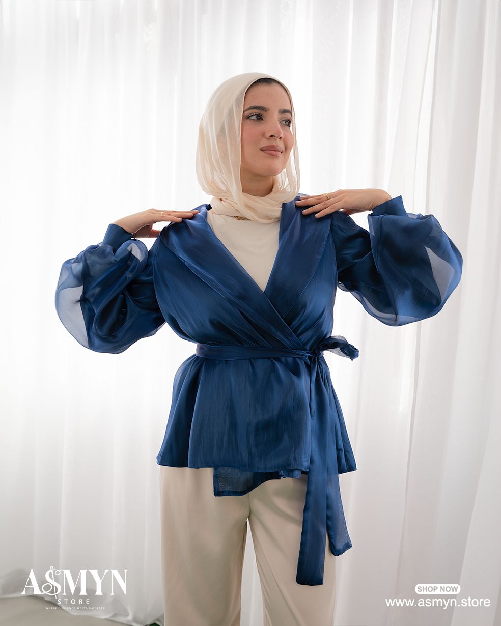 Blue Metallic Organza Wrap Blouse