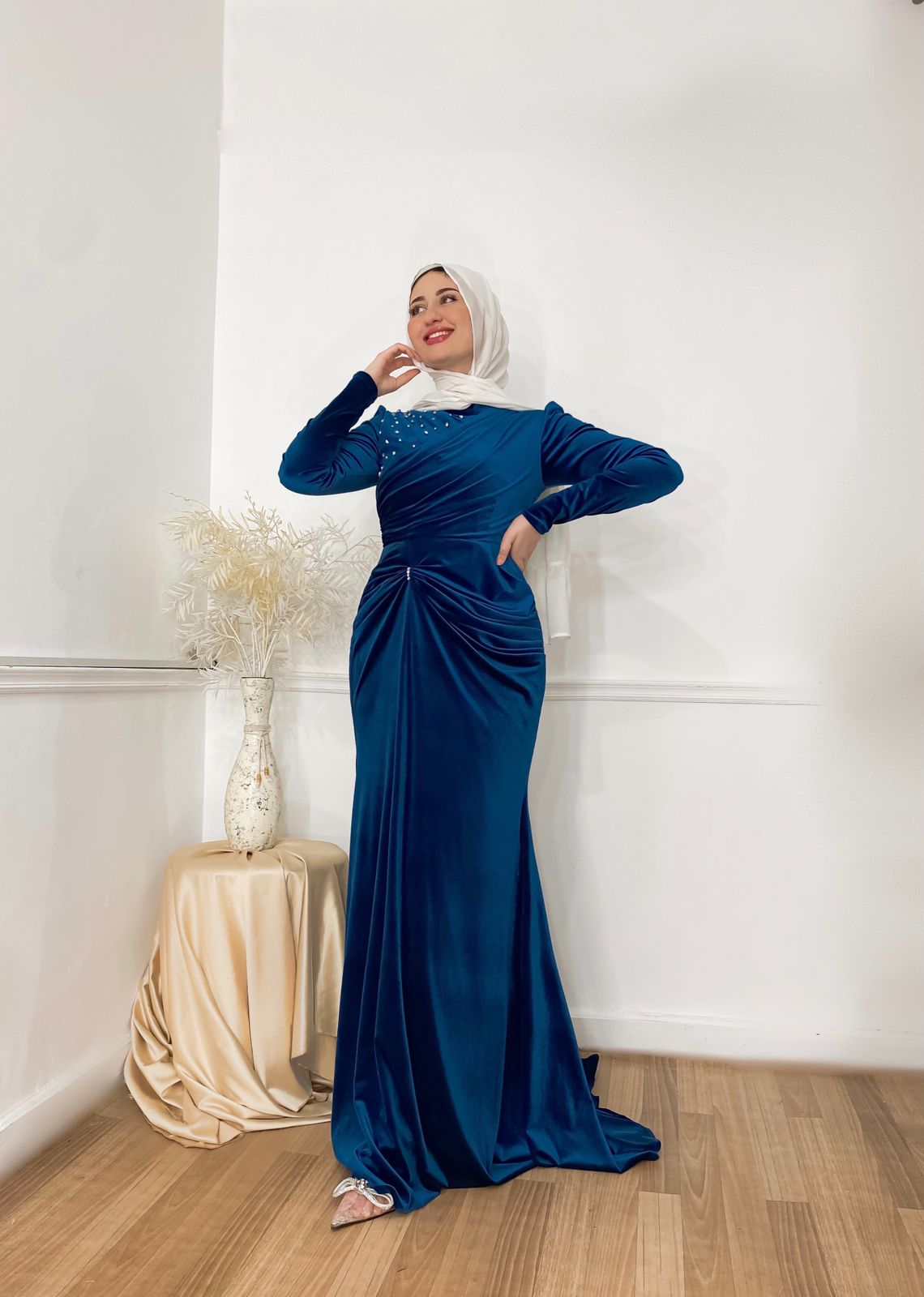 Blue Velvet Mermaid Soiree Dress