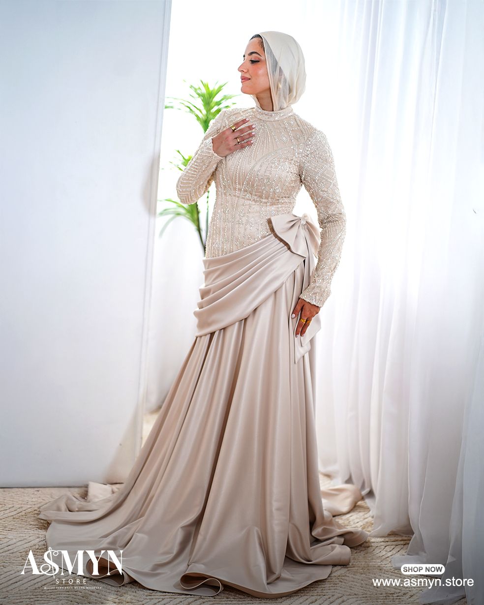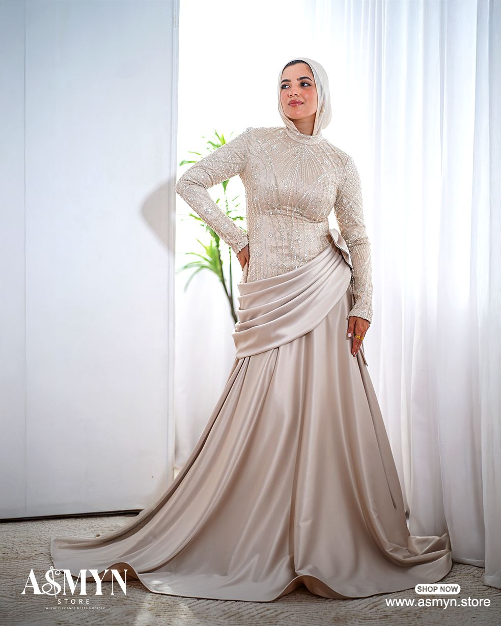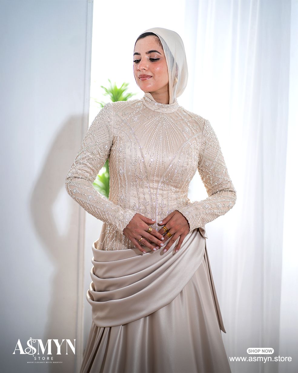 - Material: ستان مارلين إيطالي مع تطريز هاند ميد .