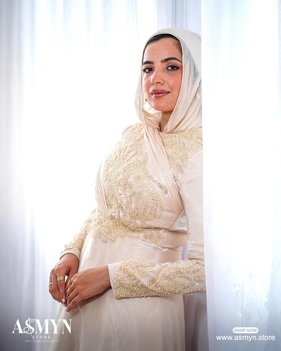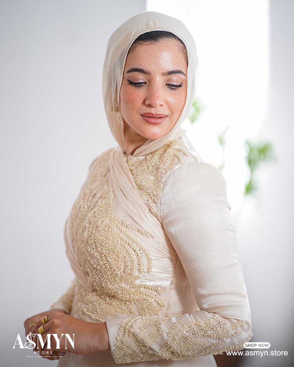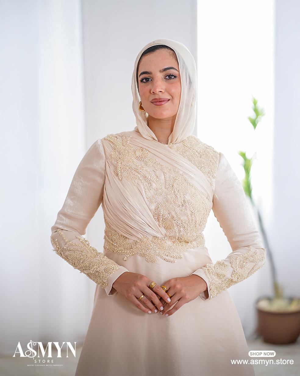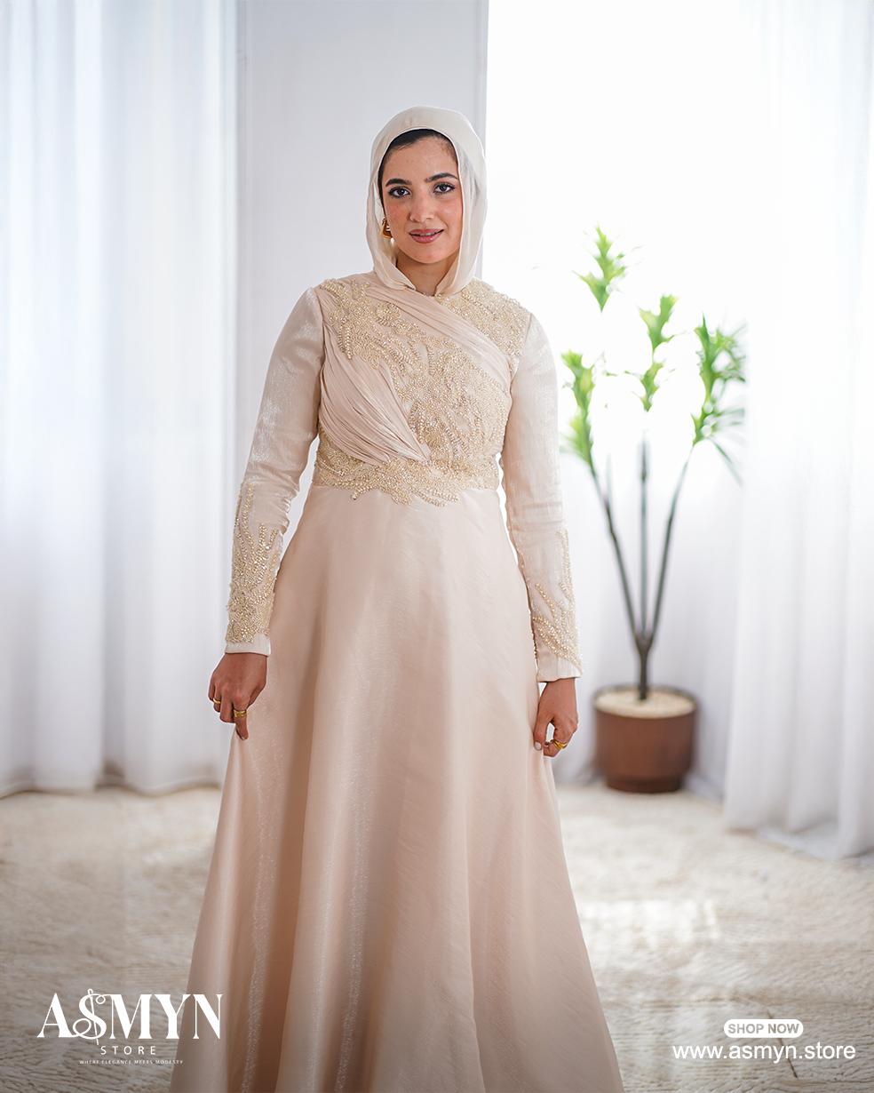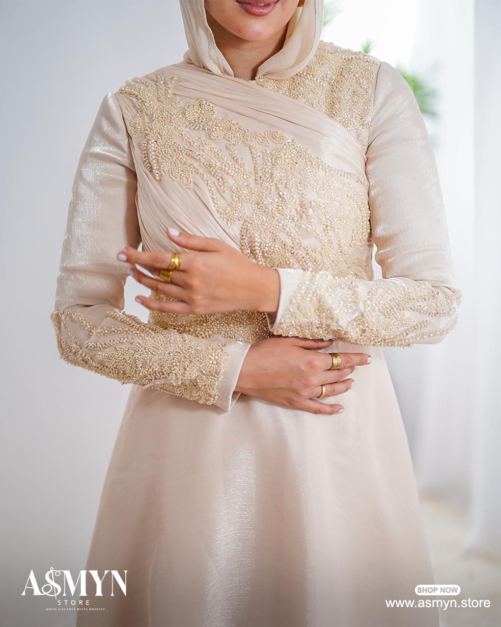 Champagne Embroidered Soiree Dress