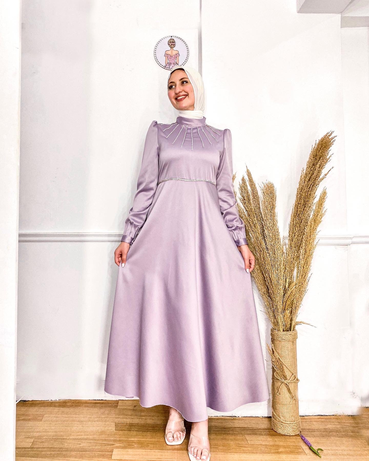 Lilac Satin Soiree Dress