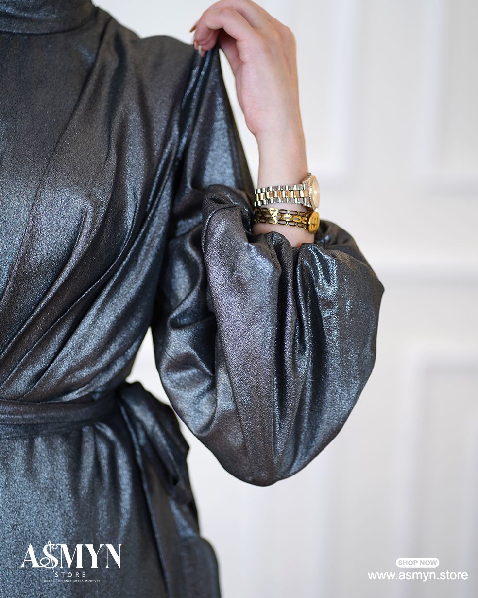 Dark-gray Metallic Satin Dress