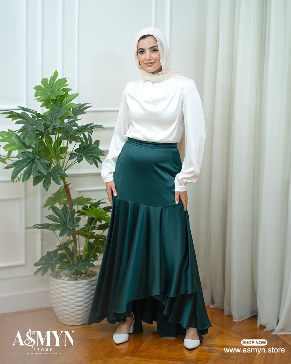 Forest Green Satin Skirt