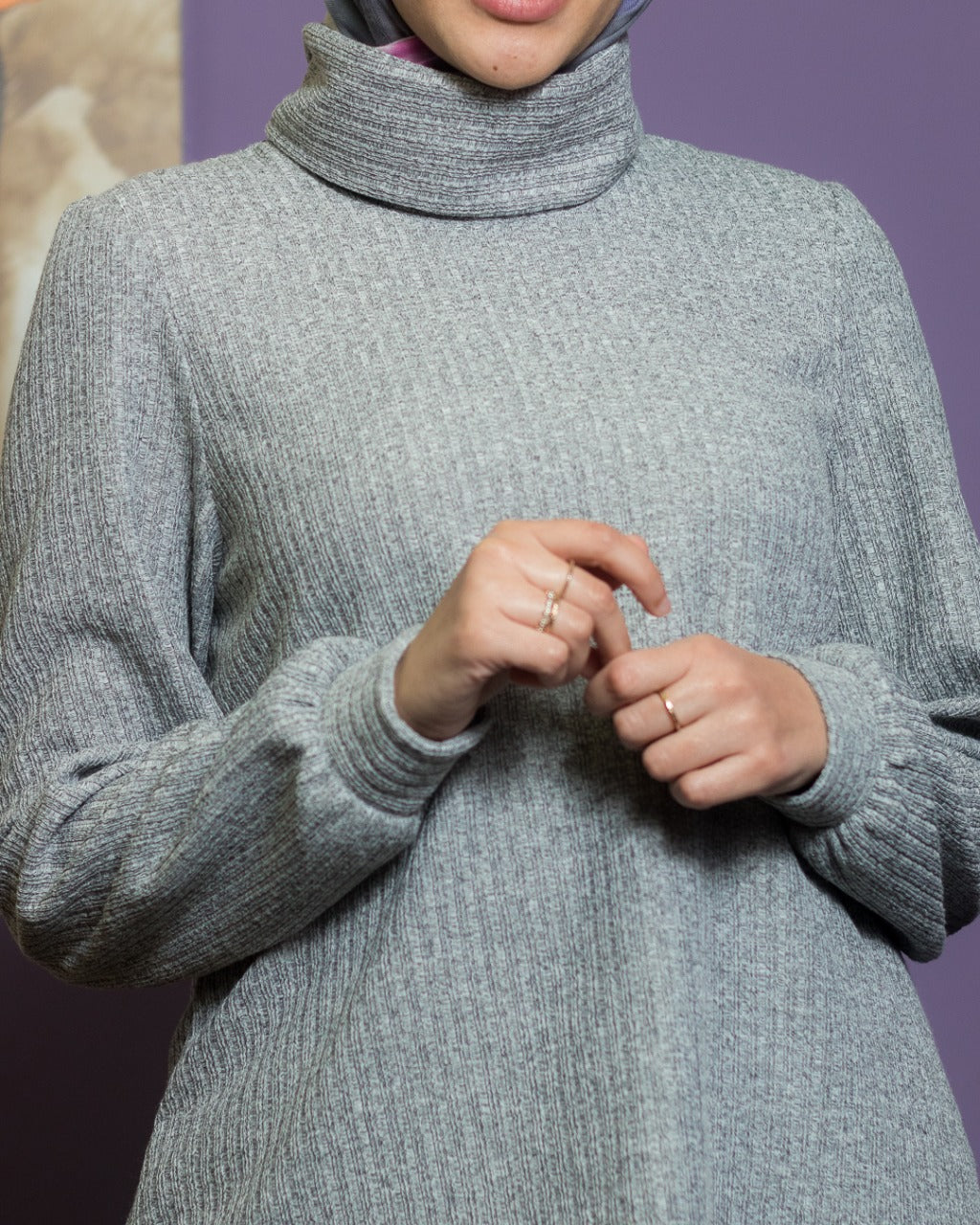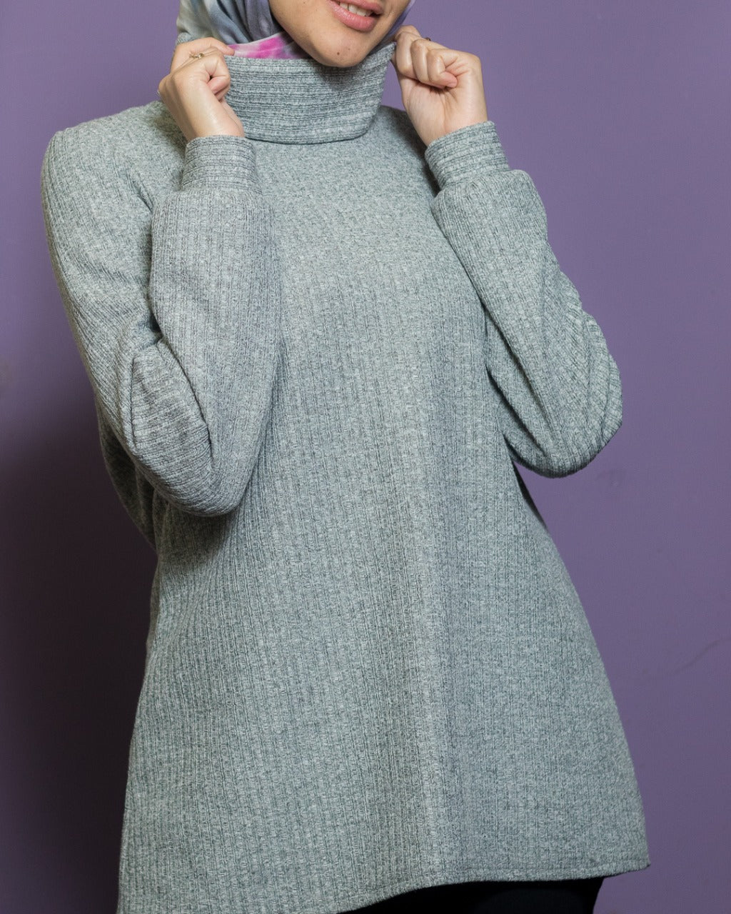 Gray High Neck Winter Blouse