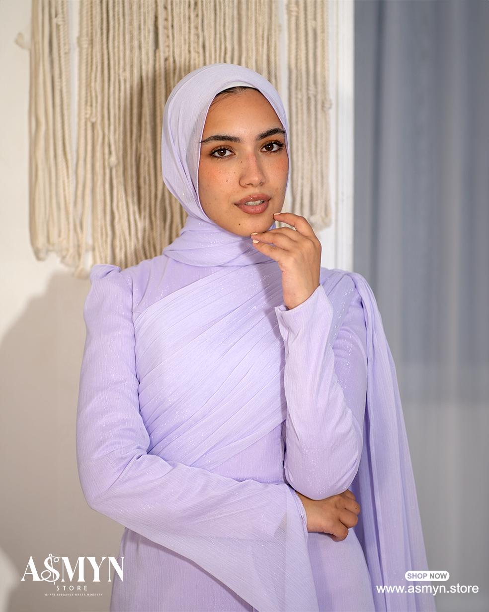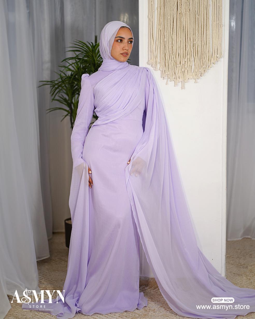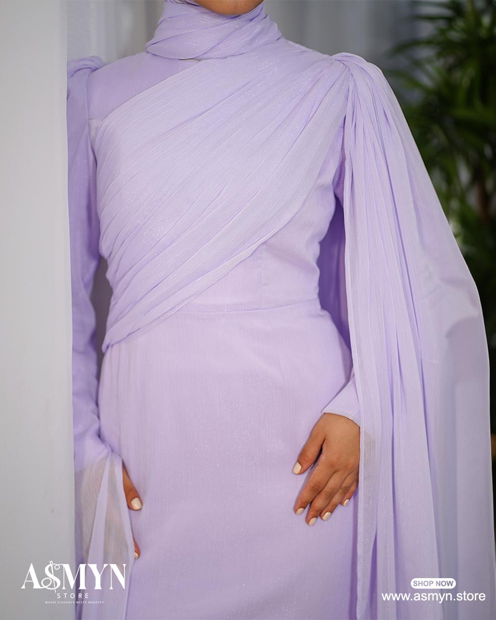 Lavendar Draped Top Soiree Dress with Shoulder Extension
