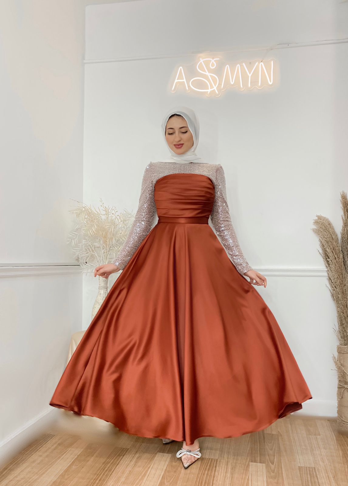 Maple Satin Soiree Dress