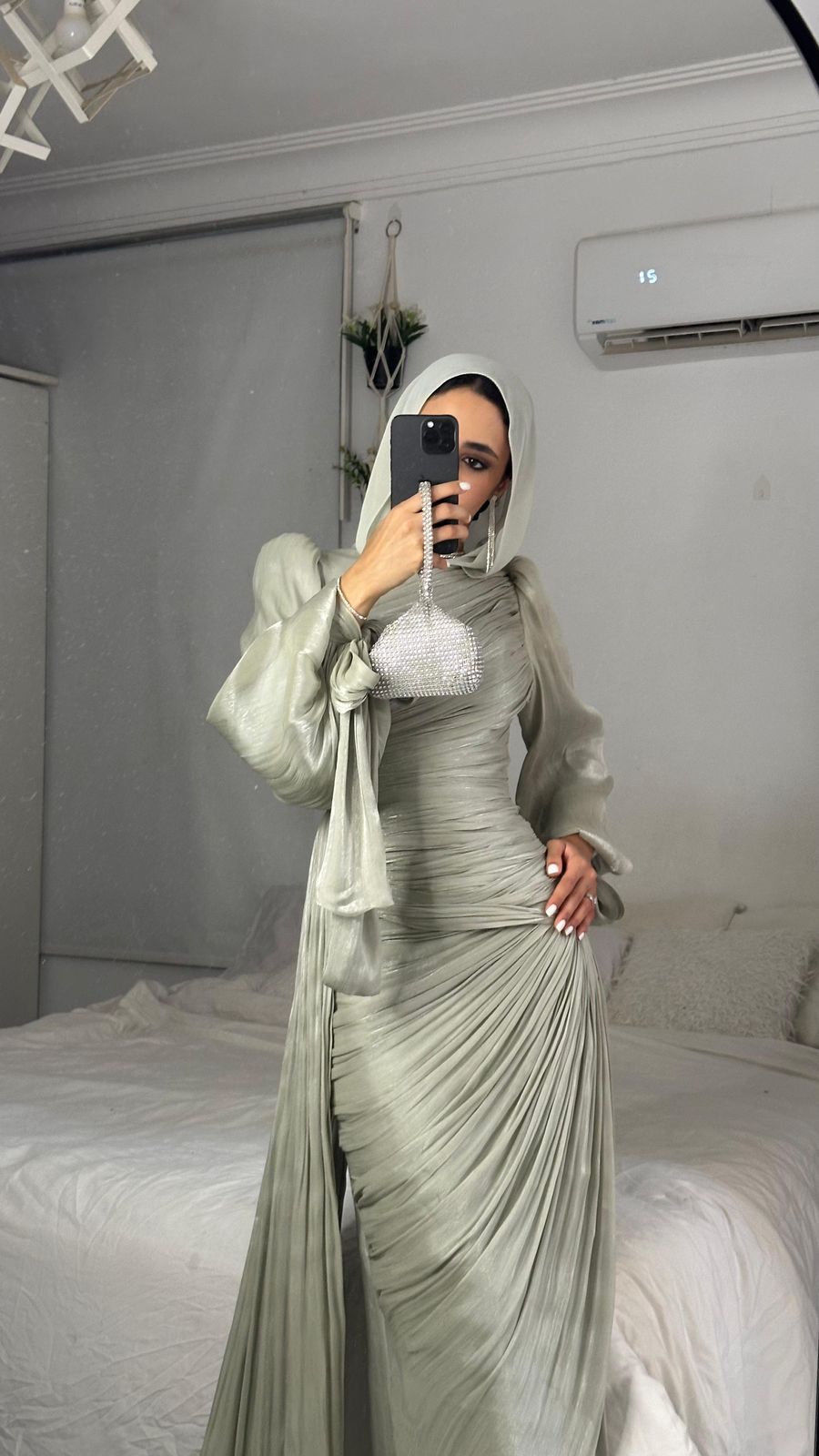 - Material: شيفون اورجانزا كرينكل مبطن بالكامل ستان