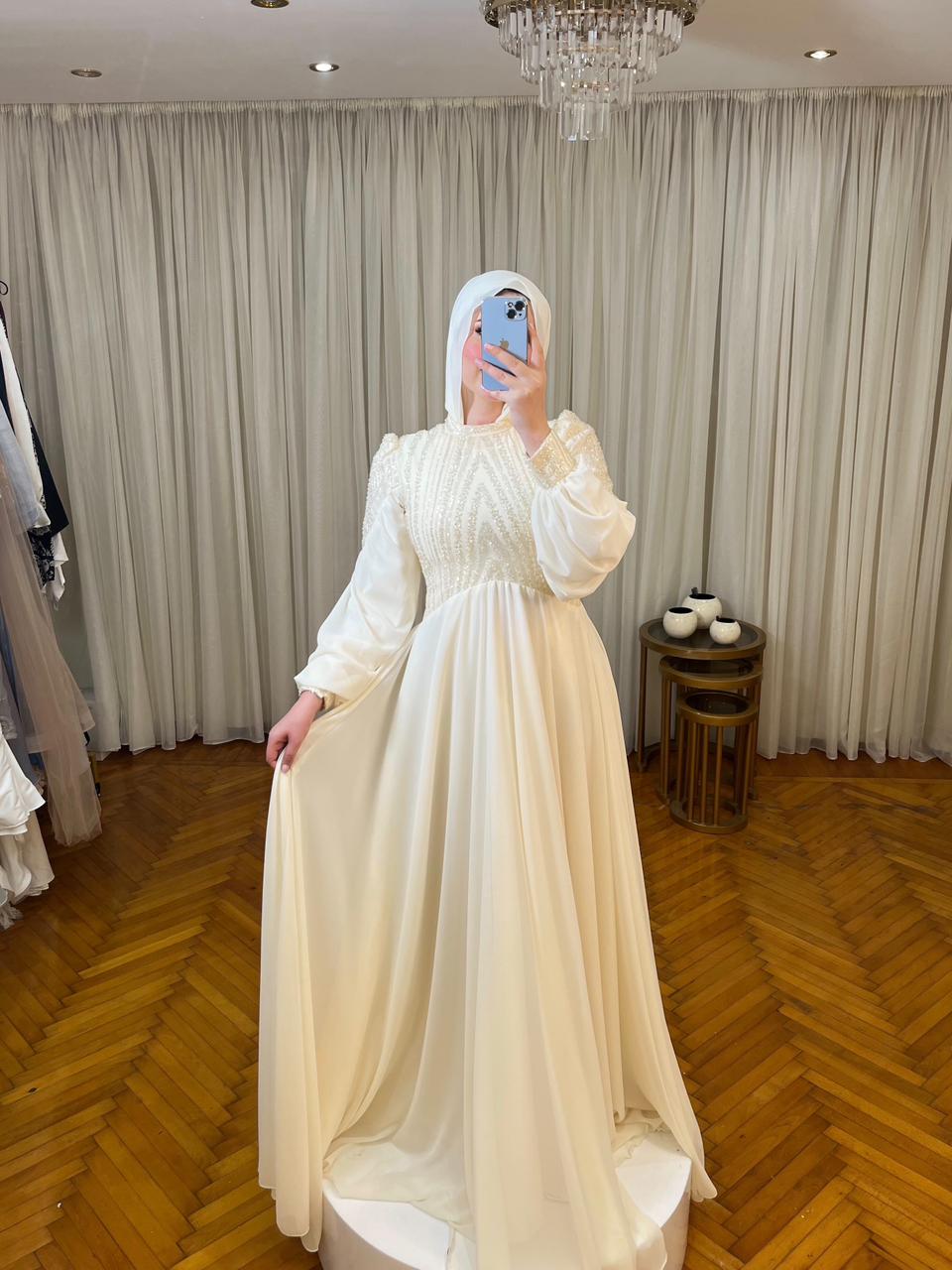 - Material: شيفون مع تل مطرز هاند ميد مبطن بالكامل ستان