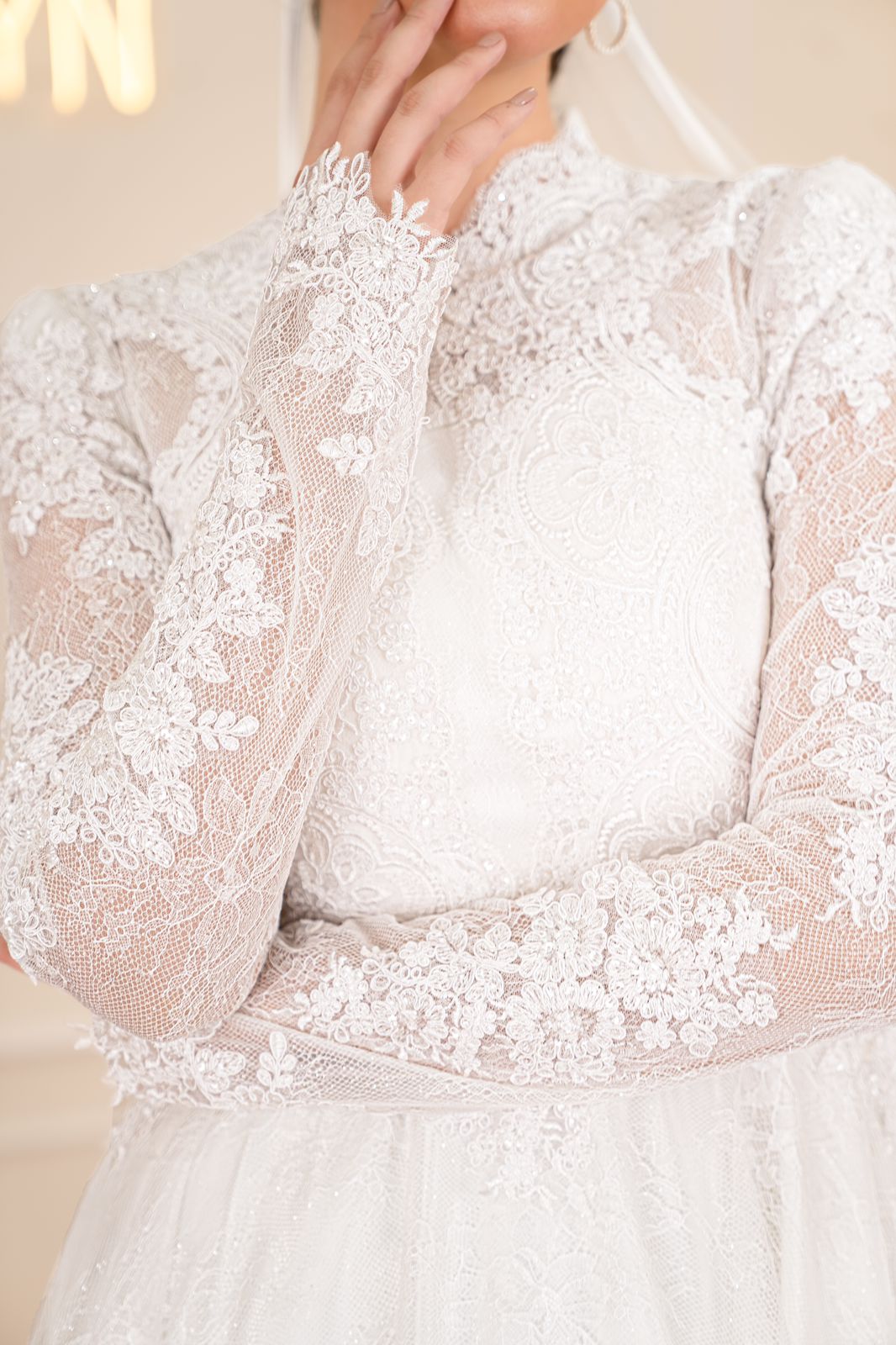 - Material: دانتيل فرنساوي مع جيبير مطرز مبطن بالكامل