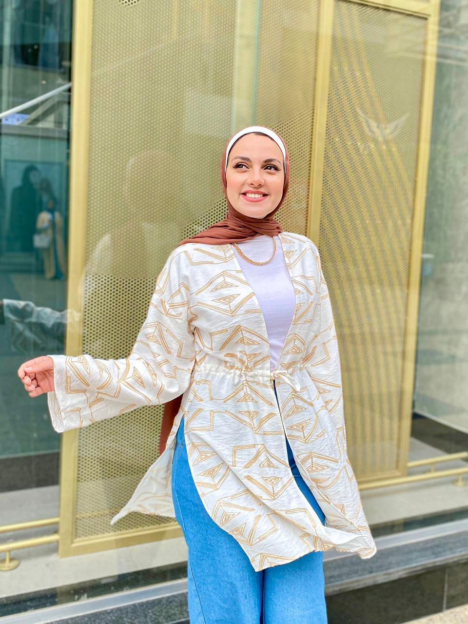 Off-white Patterned Linen Summer Kimono
