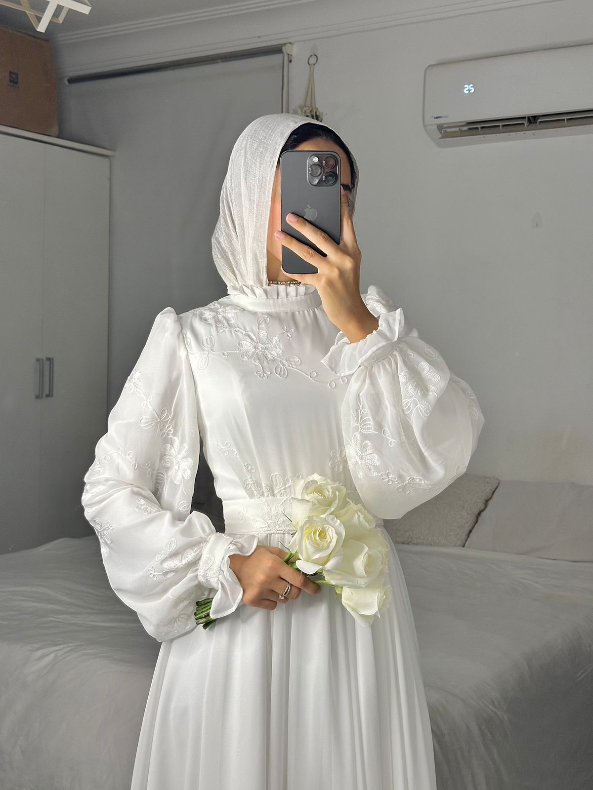 Off-white Simple Embroidered-Top Bridal Dress