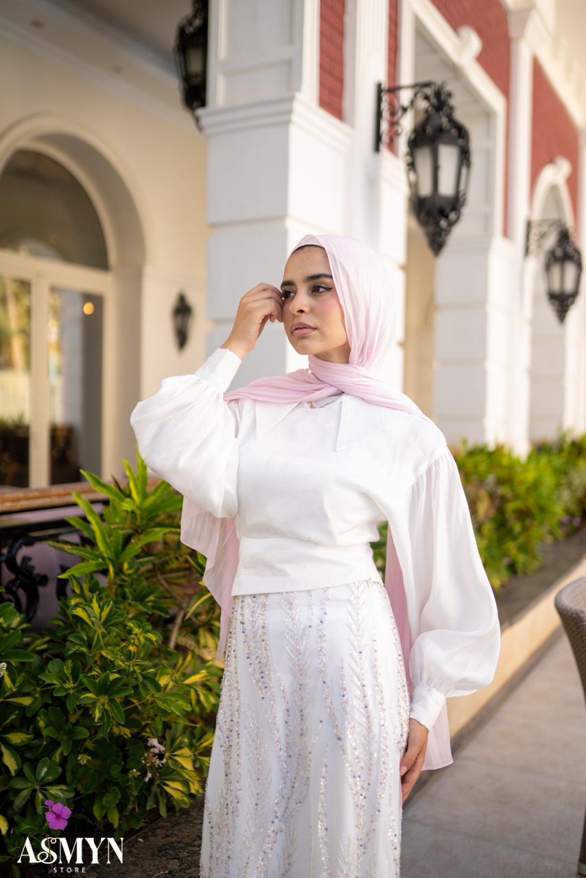 Off-white Soiree 2-pieces Dress Set with Embroidered Skirt