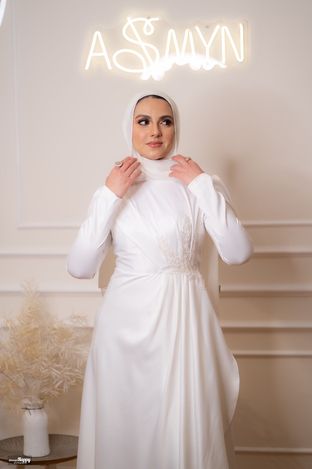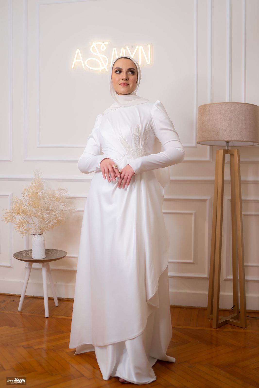 - Material: ستان مارلين ايطالي مع تطريز هاند ميد مبطن بالكامل.