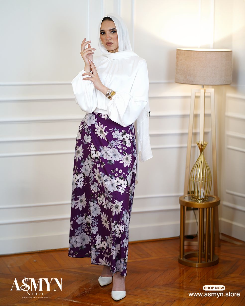 Purple Floral Satin Skirt