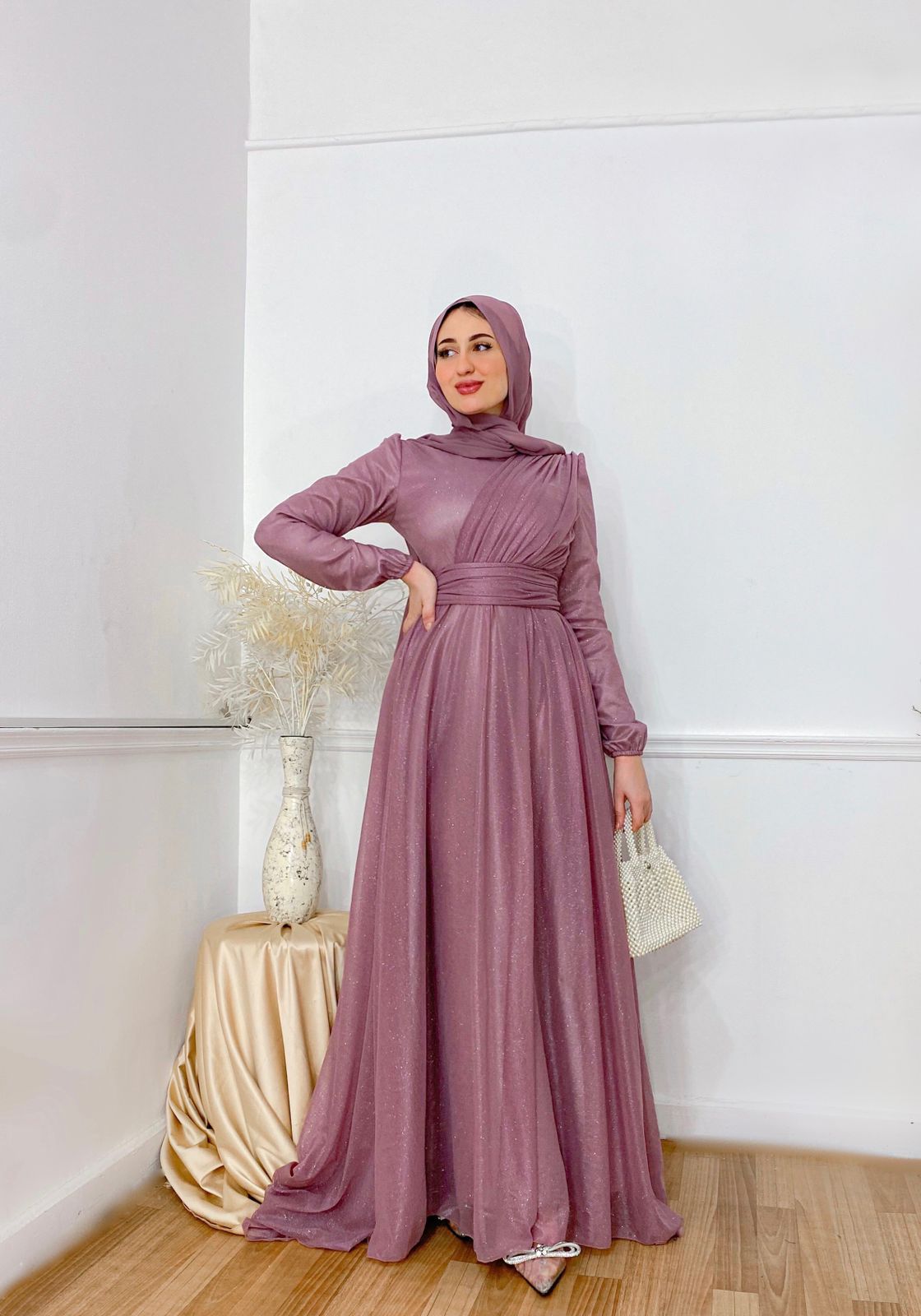 Material: شيفون جليتر مبطن بالكامل ستان.