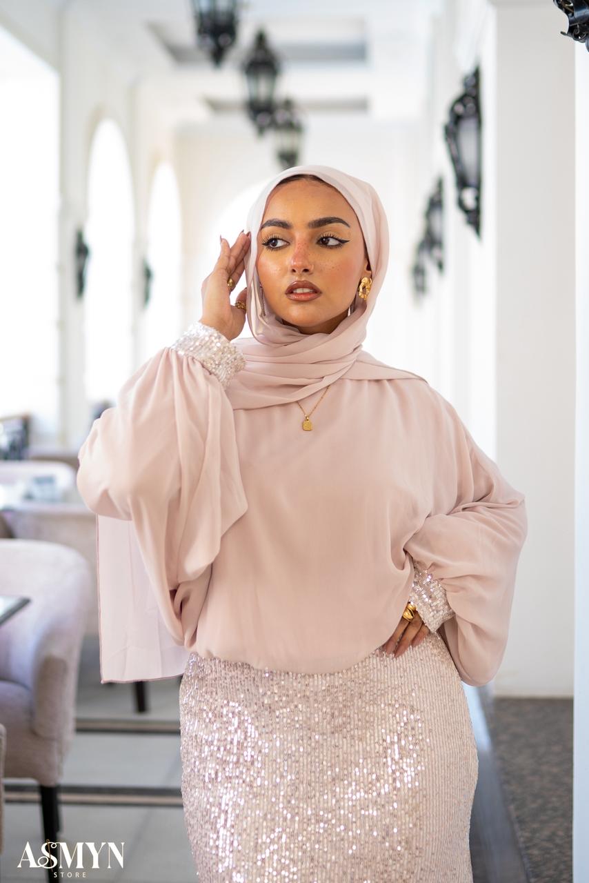 - Material: شيفون مع بايت مبطن بالكامل ستان