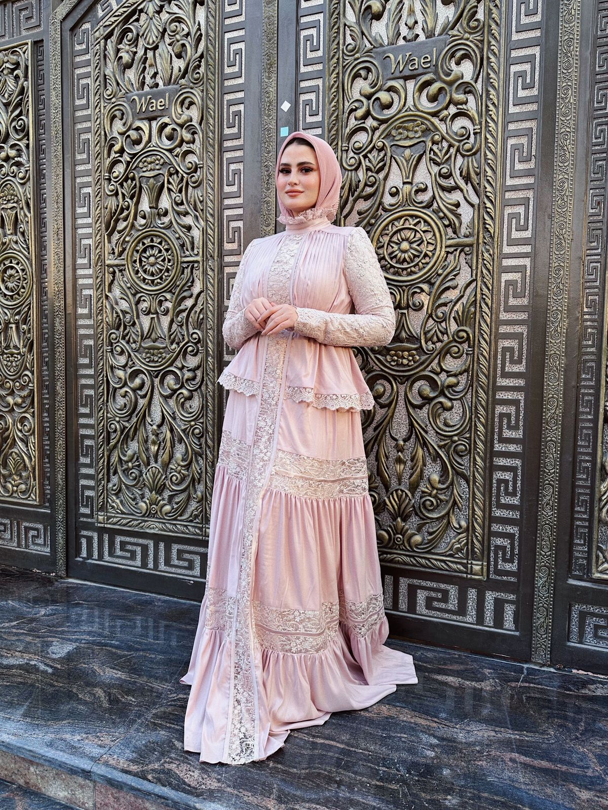 Material: حرير ستان مط إيطالي مع تل مطرز إيطالي مبطن بالكامل.