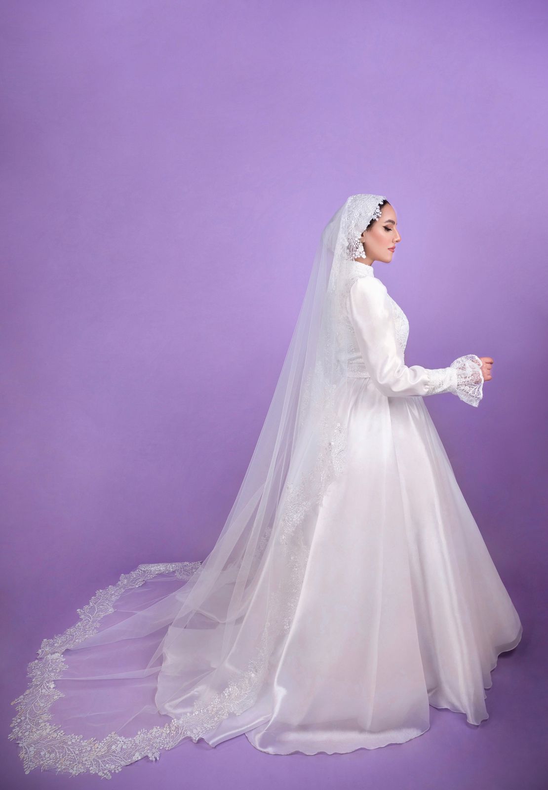 Vintage Embroidered Bridal Dress with Bridal Veil